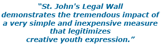 Art spaces such as legal graffiti walls legitimize and value creative youth expression, promoting the presence and activity of young people in public spaces’ prominent, not marginalized, space.